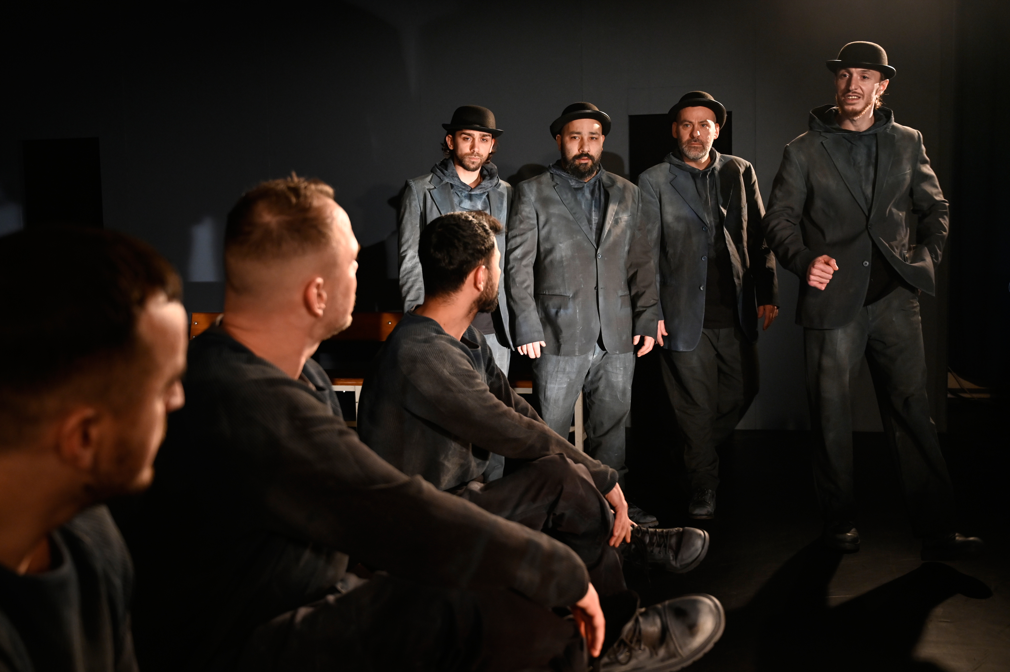 Together with the ensemble of the Plötzensee Prison, the production explores the inner landscape of waiting, expanded by elements of mask play developed in a workshop with the Geese Theatre Company from Birmingham. It shows us how fragile identity becomes in a state of uncertainty – and how much people cling to the idea that someone could come and change everything.