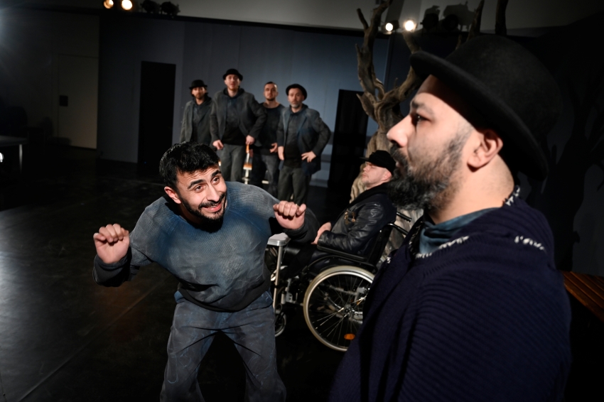 Beckett's characters are people in limbo. Suspended between times, without certainty, without purpose. This existential limbo takes many forms: it manifests itself in exile, in endless transit, in statelessness, or simply in banal stagnation, in the everyday hopelessness of interrupted biographies. For those who know no arrival, the present becomes a waiting room – a place that keeps everything open and at the same time promises nothing. In Waiting for Godot, this intermediate world takes centre stage: the ordeal of those who are on the move but cannot progress; the great weariness of those who have nothing but the hope that tomorrow will bring something different.