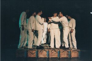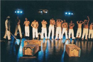 Die Inszenierung machte dabei das Spannungsfeld zwischen dem uralten Traum von Gerechtigkeit und der Realität von Justizausübung spürbar. Die stark choreographische Bühnensprache und die Konfrontation der Inhaftierten mit extrem fremdem Textmaterial führten zu einer abstrakteren Ausdrucksform, in der die Anonymität einer gesellschaftlich verordneten Läuterungsmaschine das Wesen und die Lebensäußerungen der Einzelnen zum Verschwinden zu bringen droht.