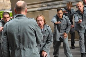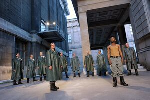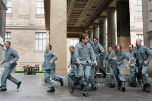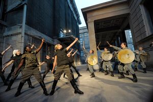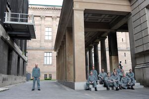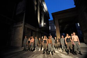 Der Begriff "Freiluft" scheint, anlässlich des viereckigen Stück Himmels, dass hoch über den Köpfen der Zuschauenden sichtbar wird, übertrieben, stattdessen ist der hinterste Winkel der preußischen Machtarchitektur wie geschaffen für die Kriegsszenarien dieses Stückes. ...
