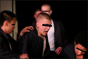 Die Studenten vom carrousel Theaterclubs trafen im Kultursaal der Jugendstrafanstalt auf die "Zwiefachen", junge Schauspieler aus betreuten Wohnprojekten und auf jugendliche Straftäter, die im Jugendgefängnis ihre Strafen absitzen. Nach wochenlangen intensiven Proben, bei denen sie ihre Sicht aufs Schicksal in Theaterstücke umgesetzten, zeigten sie sich gegenseitig und gemeinsam dem Publikum, was sie dazu sagen, denken, fühlen.