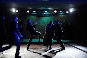 Die Inszenierung führt das Publikum in die Räumlichkeiten des früheren Casinos des Flughafengebäudes Tempelhof: Serviceräume, stillgelegte Küchentrakte und ein ehemaliger anglikanischer Gebetsraum sind Bühne und Installationsraum.