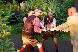 An open-air production by aufBruch KUNST GEFÄNGNIS STADT in cooperation with the Kulturbiergarten Jungfernheide.