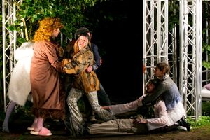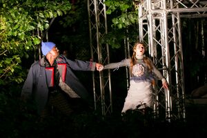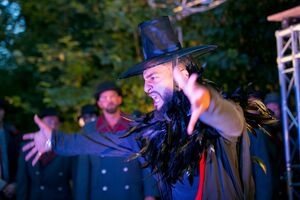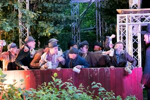 The aufBruch ensemble, consisting of ex-prisoners, released prisoners and two actresses, follows this verdict and is performing Goethe's masterpiece this summer on the overgrown Gustav Böß open-air stage in Jungfernheide. Man wants to explore “what holds the world together at its core”. Because of this exploration, he invented revenge and robbery, invented crime, and every place is in danger of becoming a crime scene. Faust is the self-indulgent perpetrator who wants one thing above all: to throw himself “into the rush of time,/ into the roll of events”. aufBruch players know this. In every ambition to win there is greed, in every greed there is transgression. The ultimate thrill may be a great reward, but how high is the price of going too far...