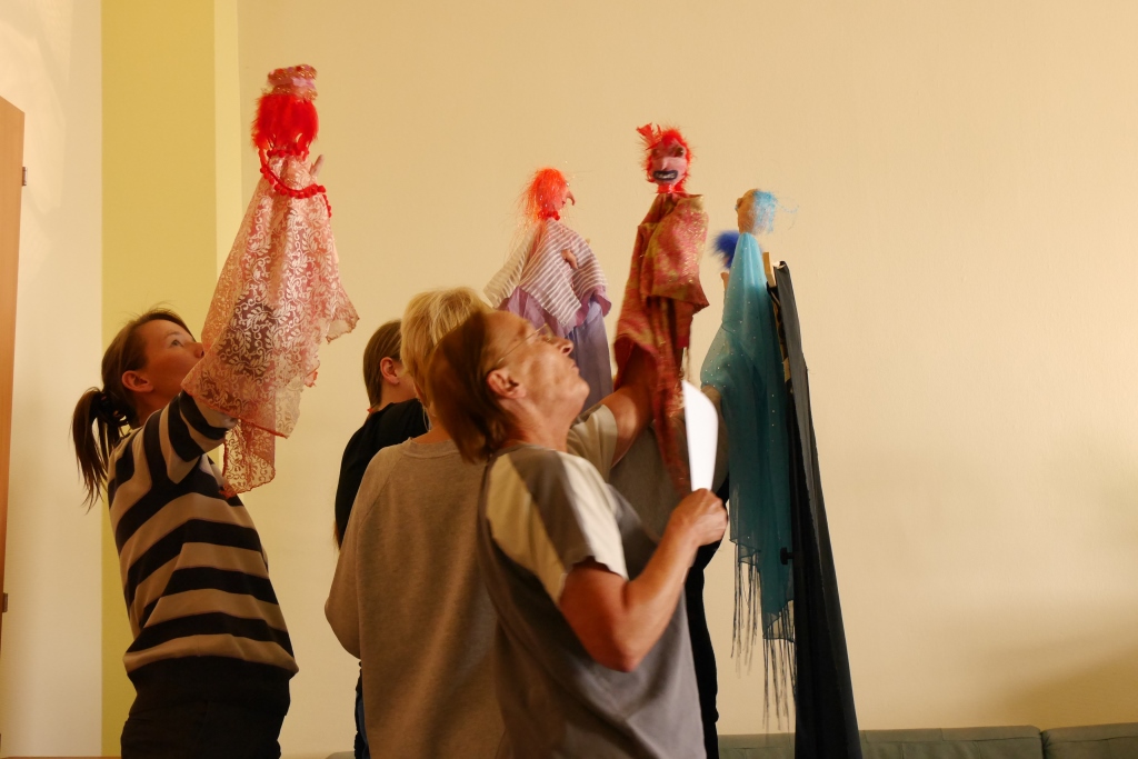 Von August bis November 2015 beschäftigten sich inhaftierte Frauen unter der Anleitung der beiden Künstlerinnen Ute Kahmann und Maarit Kreuzinger mit den vielfältigen Ausdrucksmöglichkeiten des Figurentheaters.