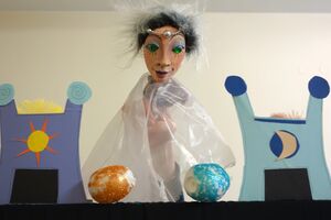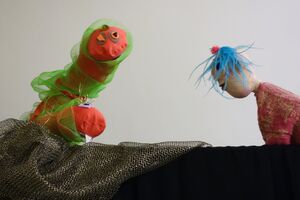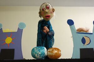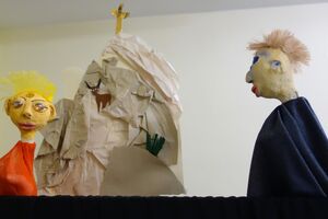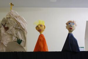 Eigene Puppen und Schattenspielfiguren wurden erbaut und der Umgang, das Halten, Sprechen und Spielen mit Puppen wurde erprobt.